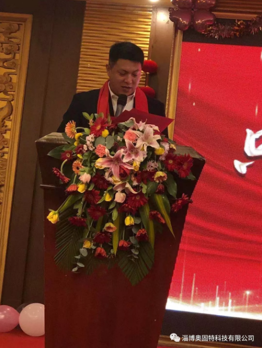 然后由淄博奧固特科技有限公司總經(jīng)理李春玉致新春賀辭,他代表公司感謝各位與公司同甘共苦的毅力,以及勇往直前的韌性,更要感謝各位對(duì)公司一如既往的支持和信任!并代表公司祝愿我們每一位奧固特人,在新的一年里工作順利!身體健康!闔家幸福!