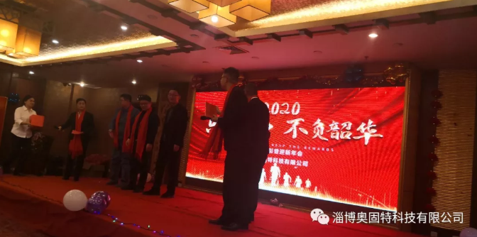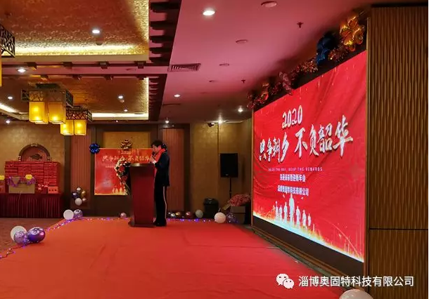 晚會(huì)開始首先由淄博奧固特科技有限公司執(zhí)行董事王總發(fā)表致辭,并宣布2020年度先進(jìn)表彰暨迎新年會(huì)正式開始,她代表公司感謝各位在過去一年為公司做出的貢獻(xiàn)和努力,并向全體員工致以親切的問候和新年的祝福。